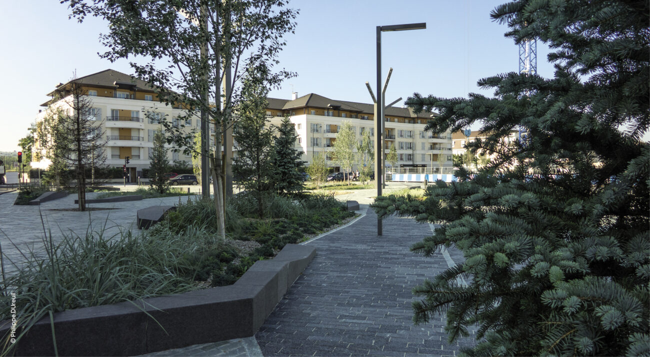 Nature de la mission : Mission complète de maîtrise d’œuvre pour la création d’une promenade urbaine au cœur d’un écoquartier (surface minérale et végétale, éclairage et mobilier).