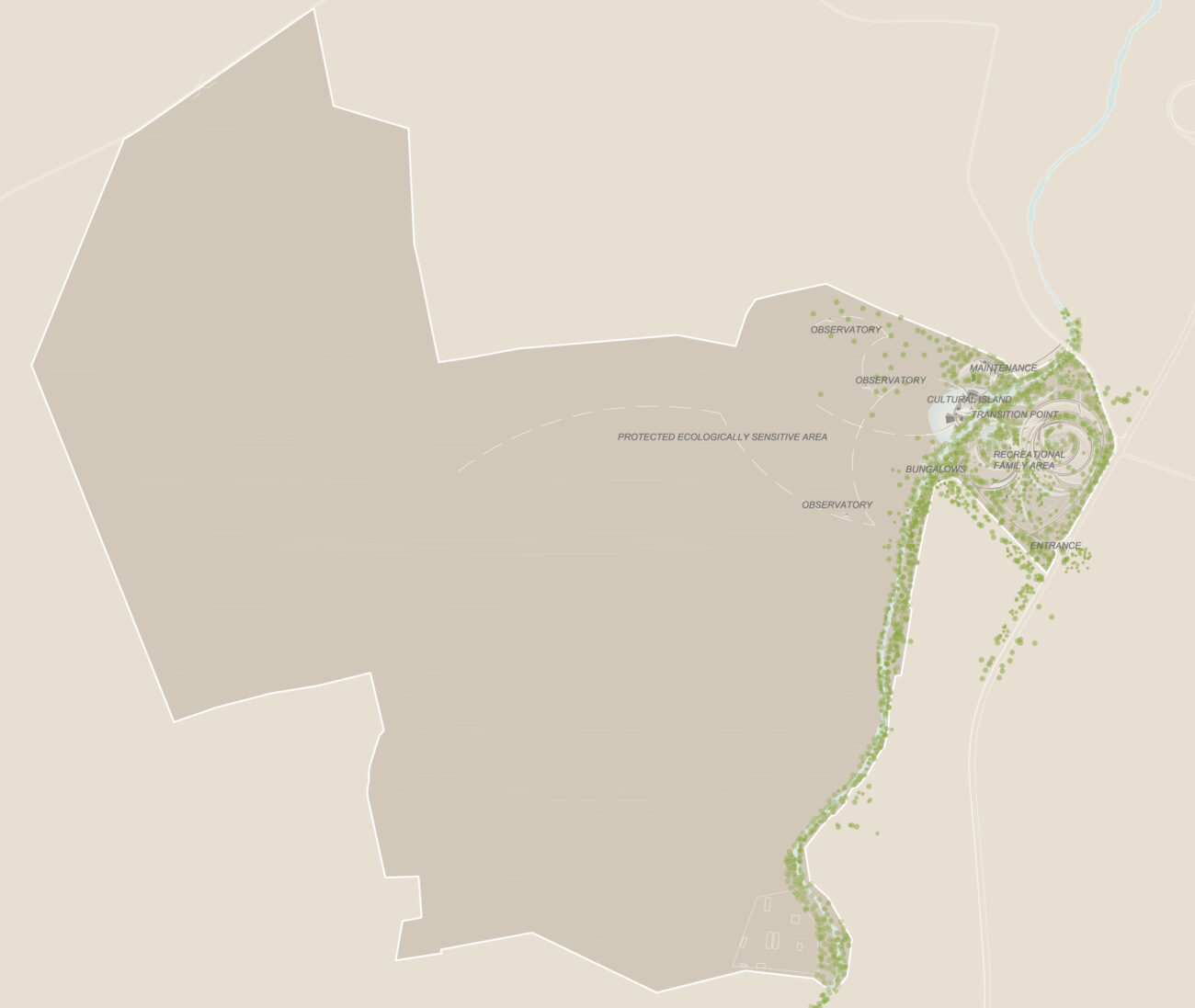 - Une zone de transition au niveau de la traversée de l’oued constituera l’entrée du site naturel.